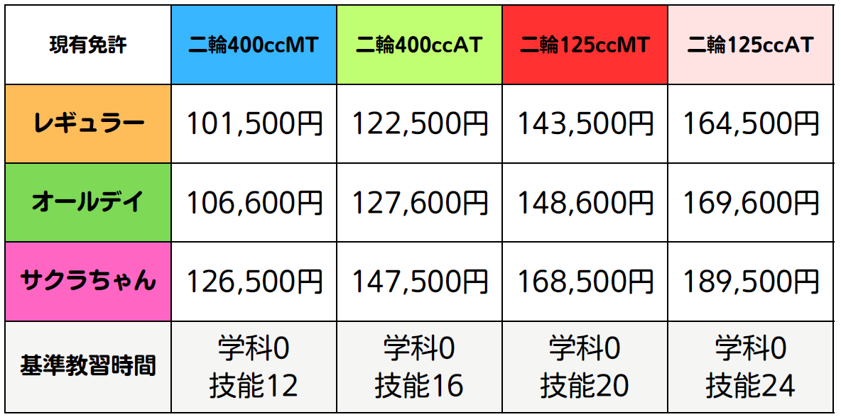 ※普通二輪400ccMT(レギュラー・オールディコース)は入校時にまず1段階2回目までの予約をお取りします。